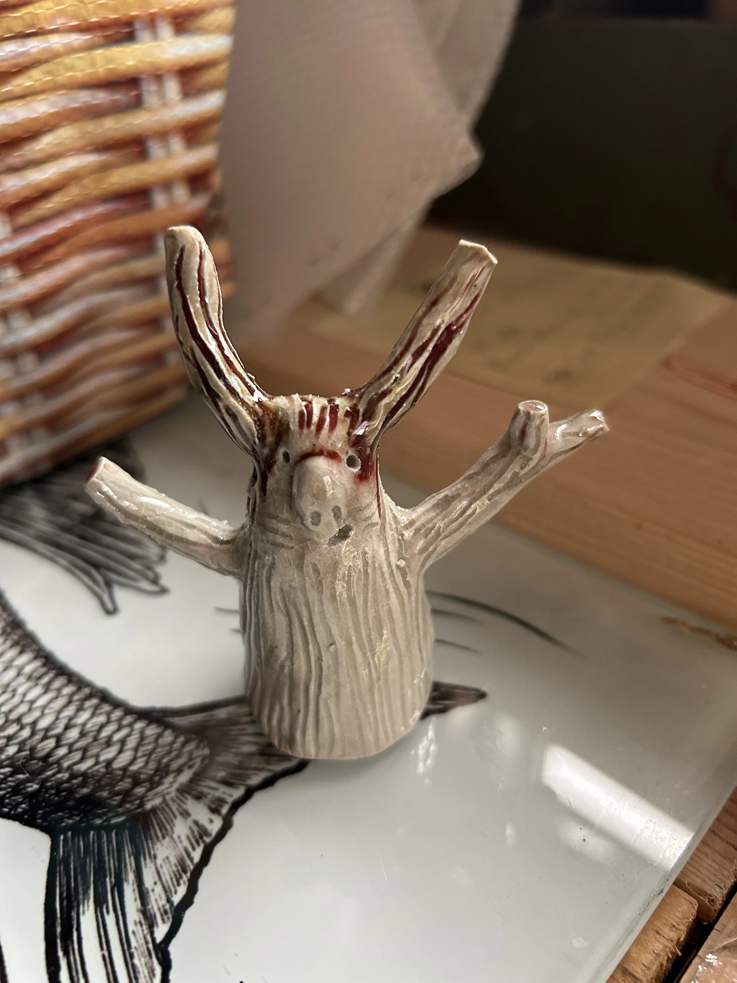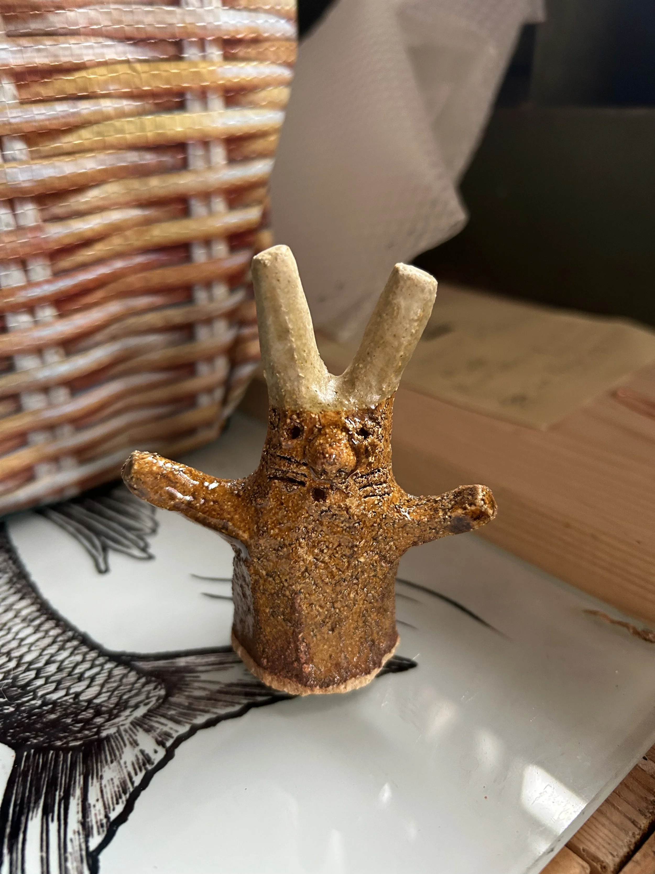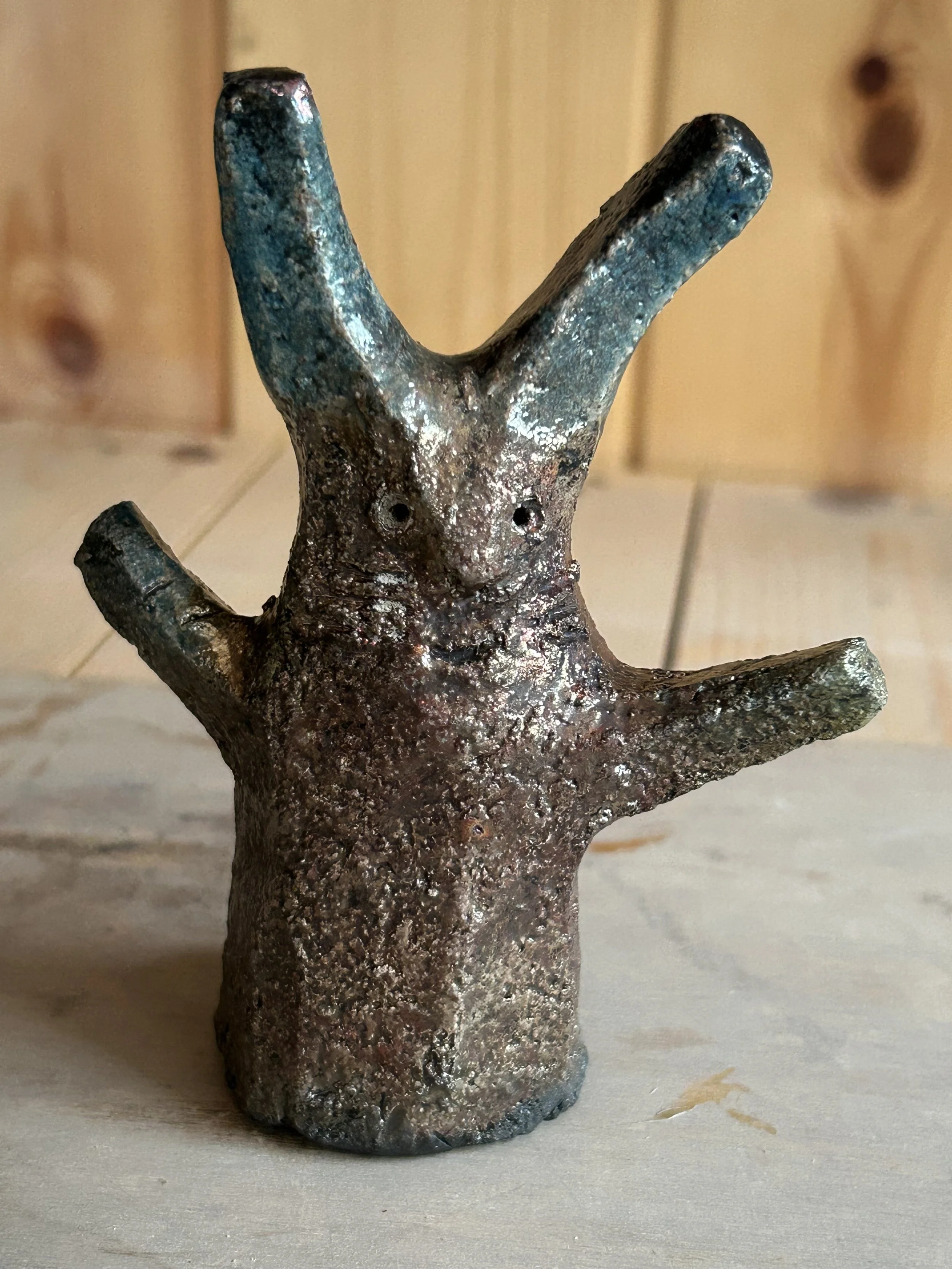 I made the first two tree hares at the end of a very long day, they came from my subconscious. They have become more cheery since the first two and I have found them wonderful for experimenting with glazes.