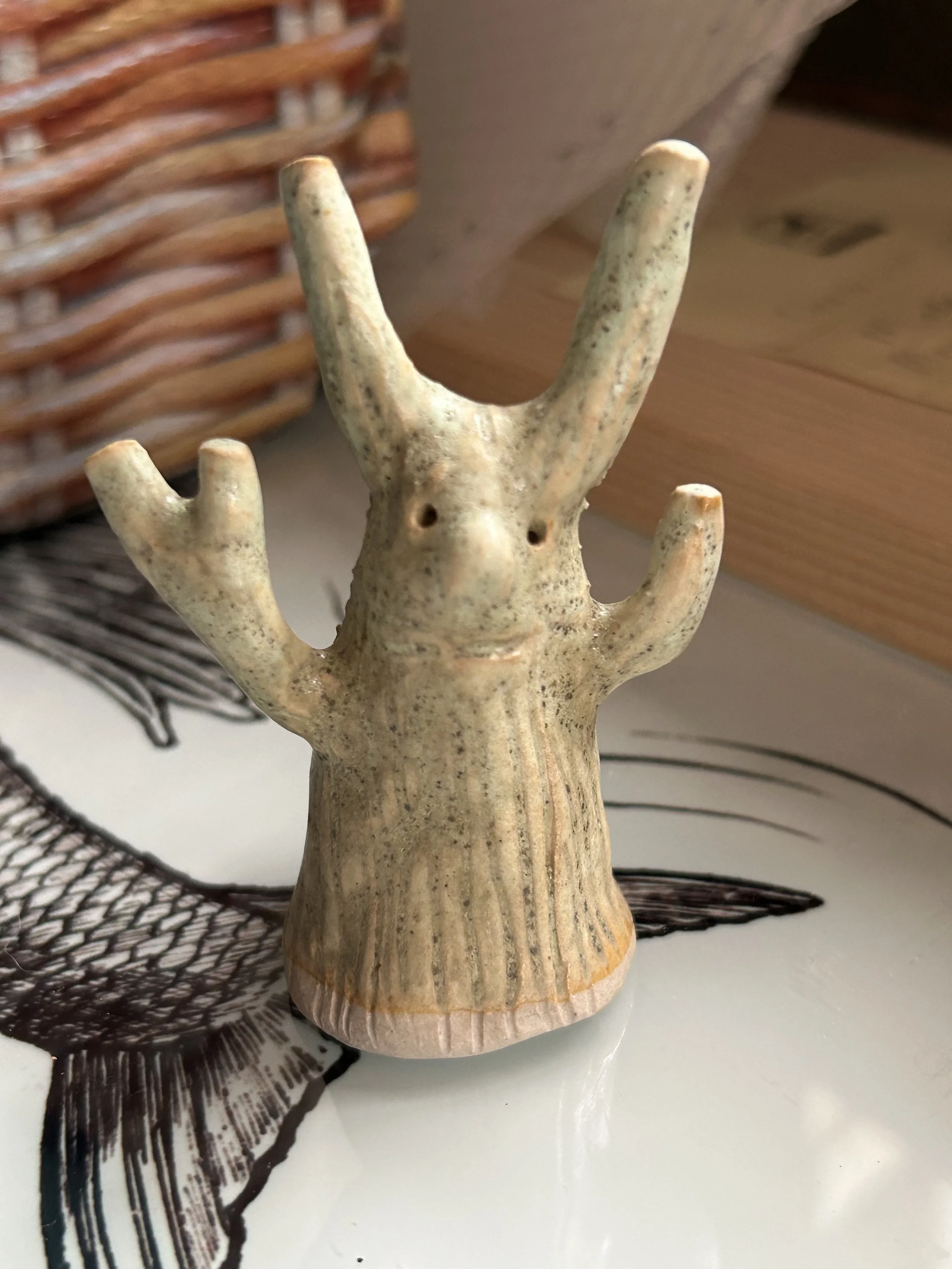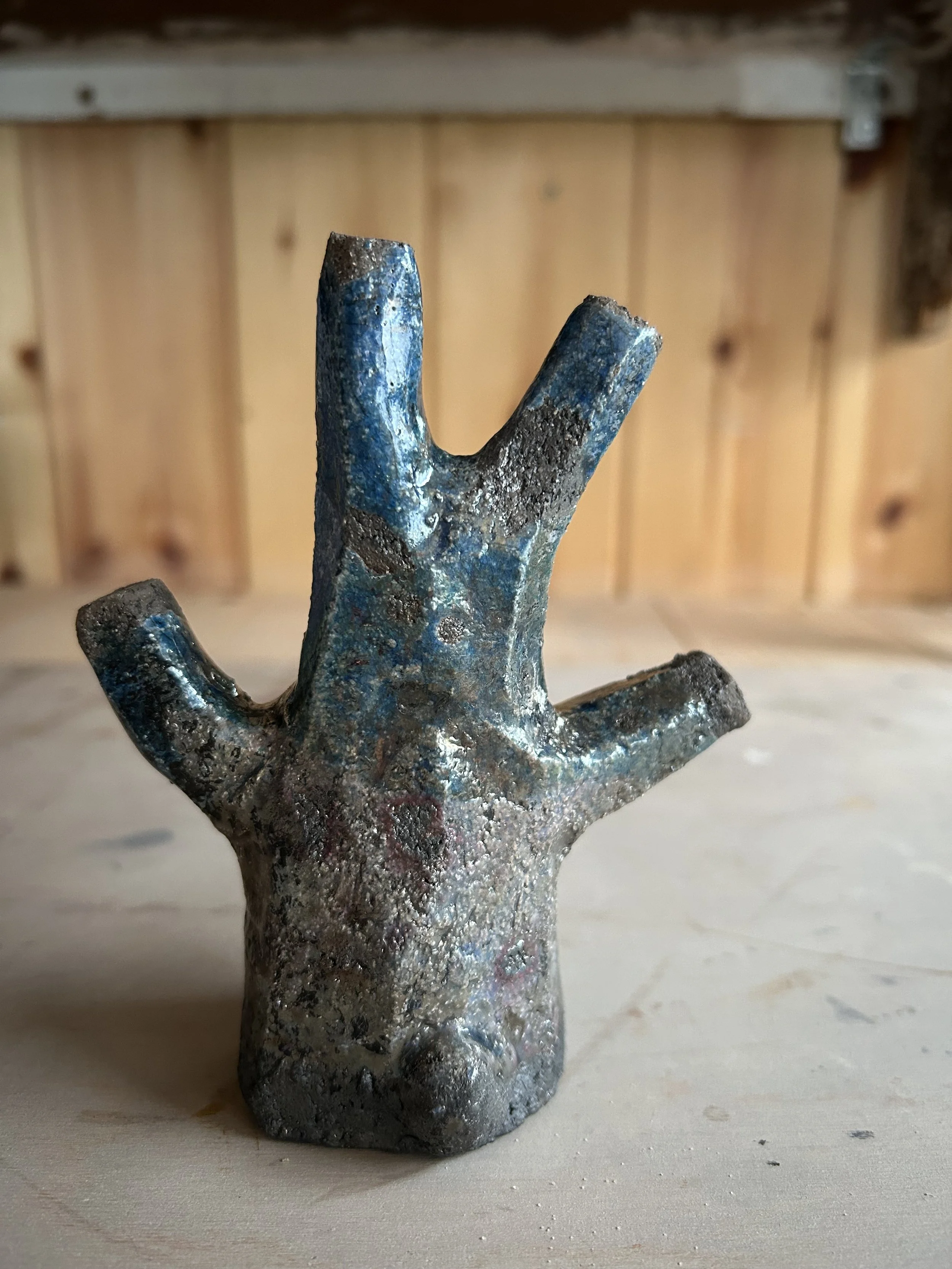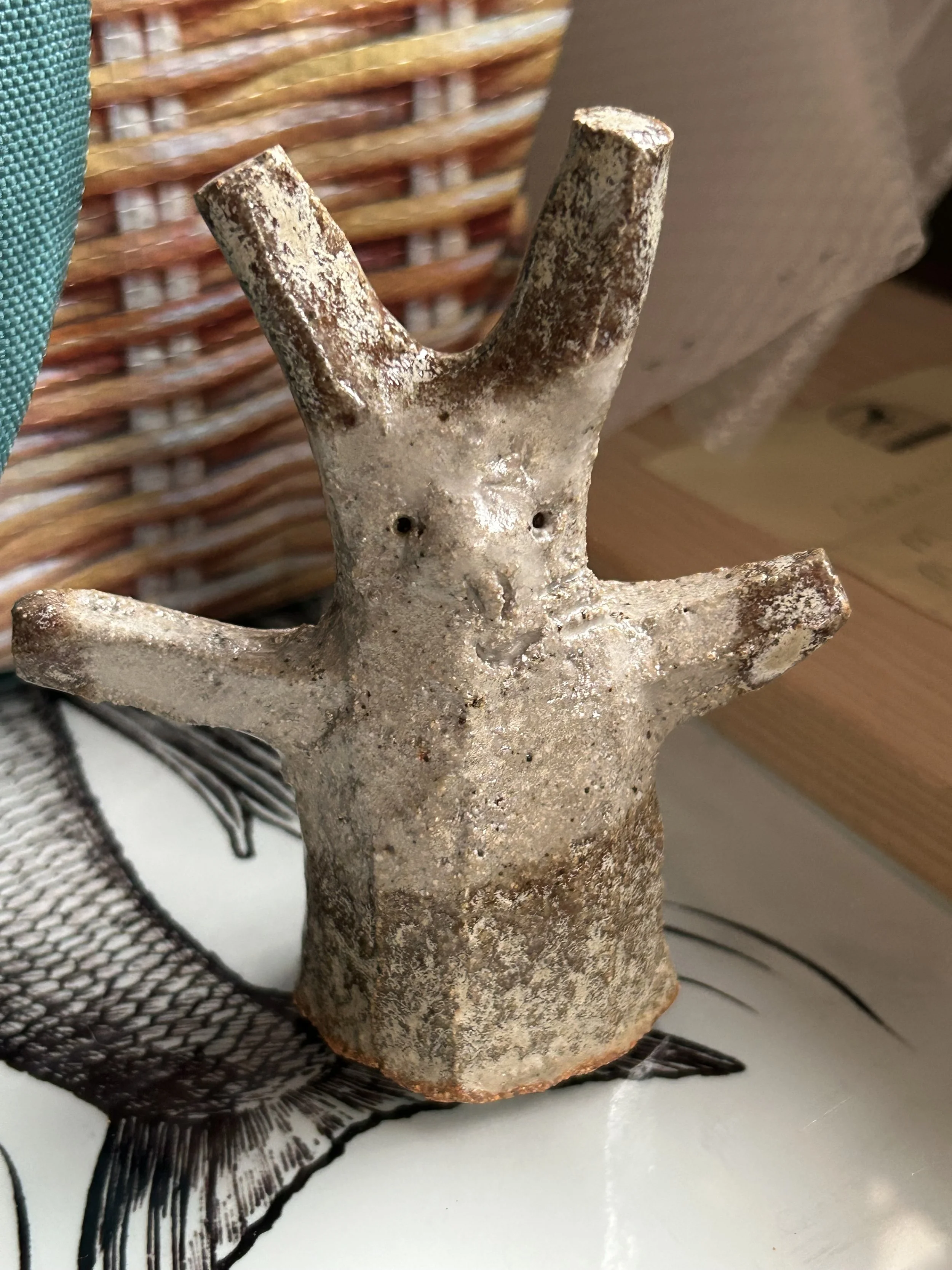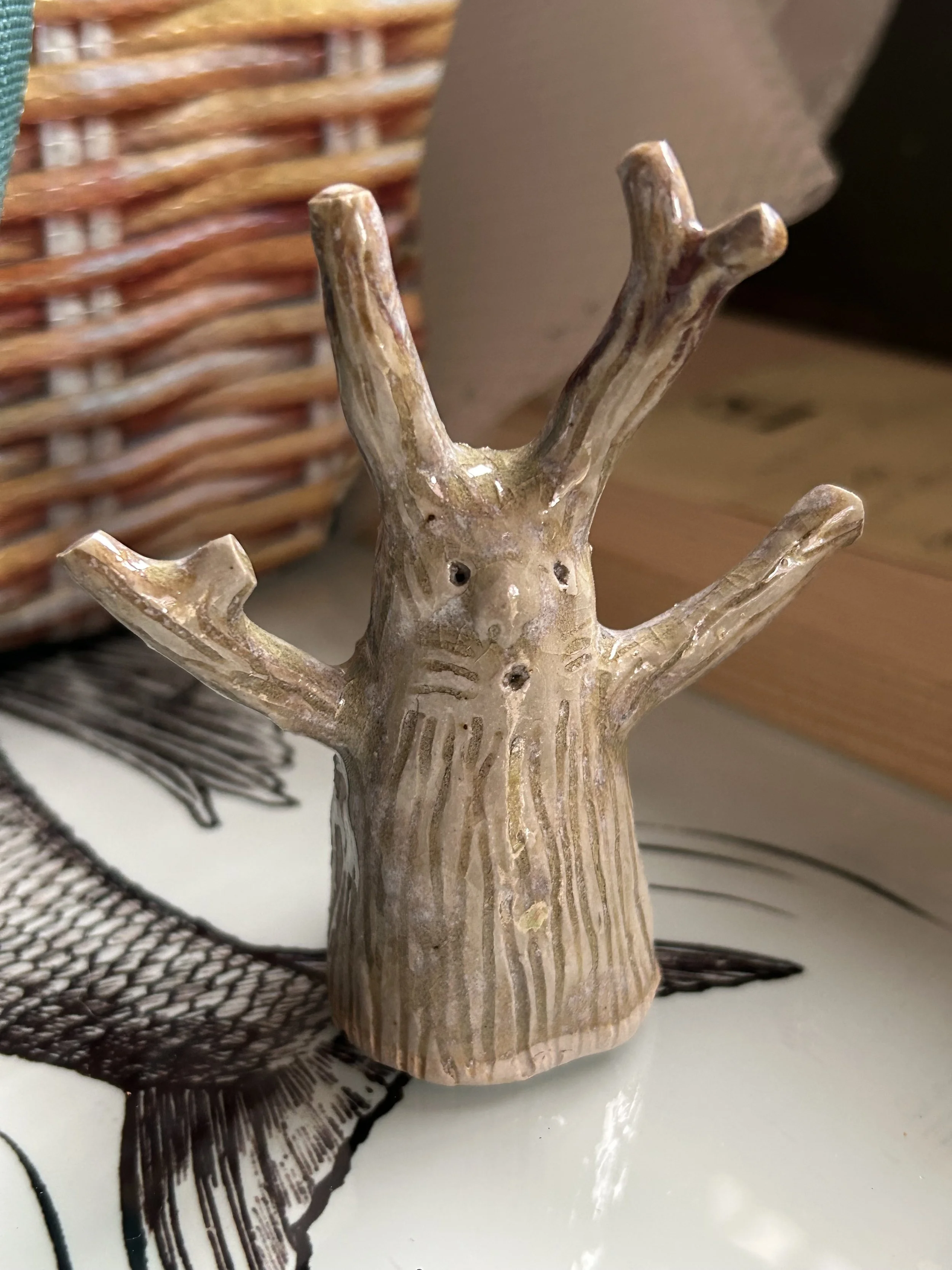 I made the first two tree hares at the end of a very long day, they came from my subconscious. They have become more cheery since the first two and I have found them wonderful for experimenting with glazes.