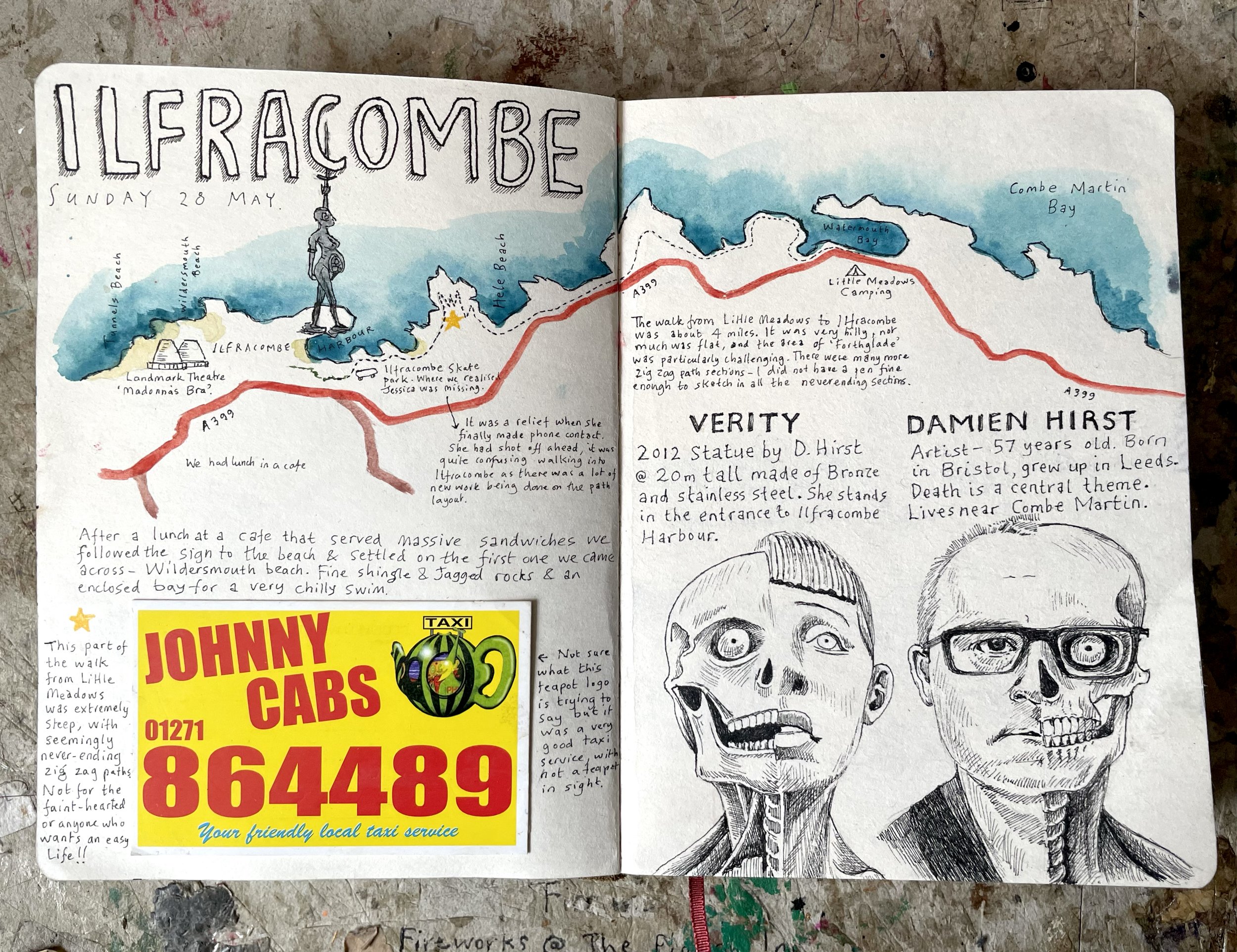 My sketchbook journal page for a recent trip to the North Devon Coast.