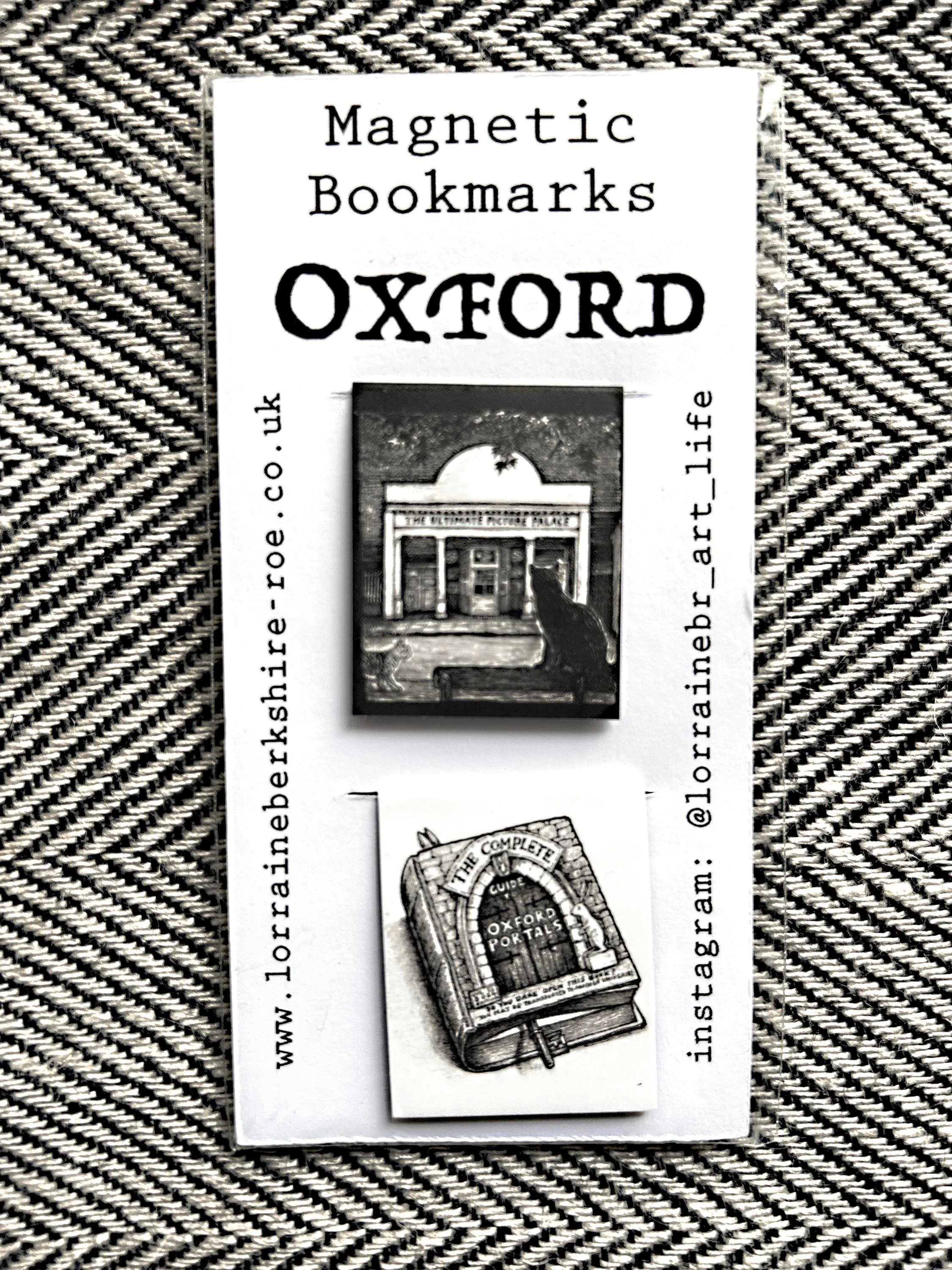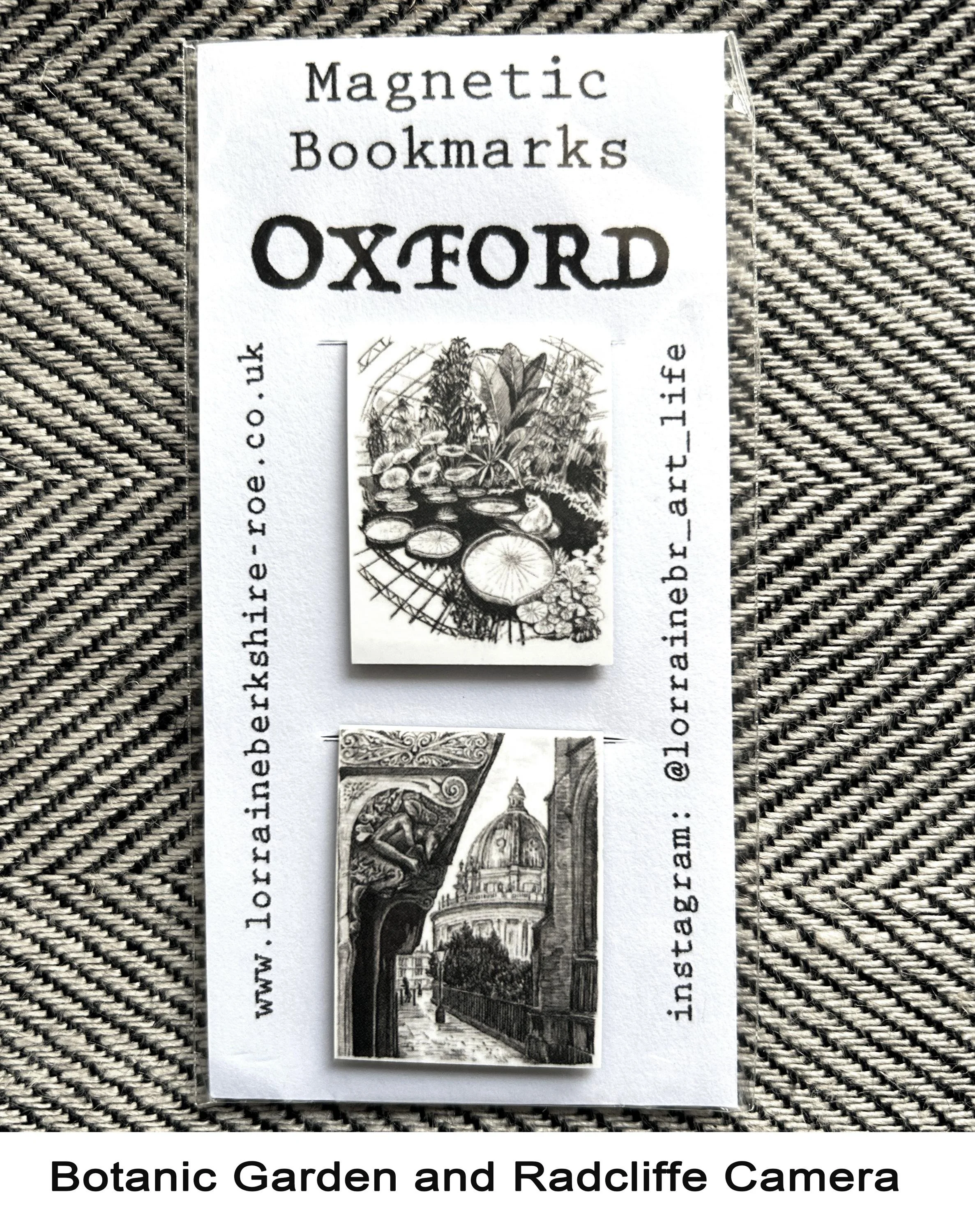 These bookmarks feature black and white ink illustrations which are part of the body of work I have illustrated for the Inktober drawing challenge in October 2024. I chose my own theme of Oxford which I fitted all the prompts around. There is a brief write up about each illustration on the back of the bookmark. Each bookmark is 28mm wide and 35mm high. They clip over the page and stay in place securely without marking the page.